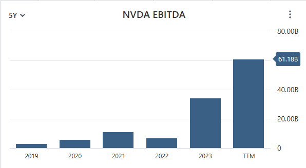 В нашия пример с NVIDIA, EBITDA е с предоминираща тенденция за растеж (с рекорд през 2023), така че го приемаме добре и продължаваме.
