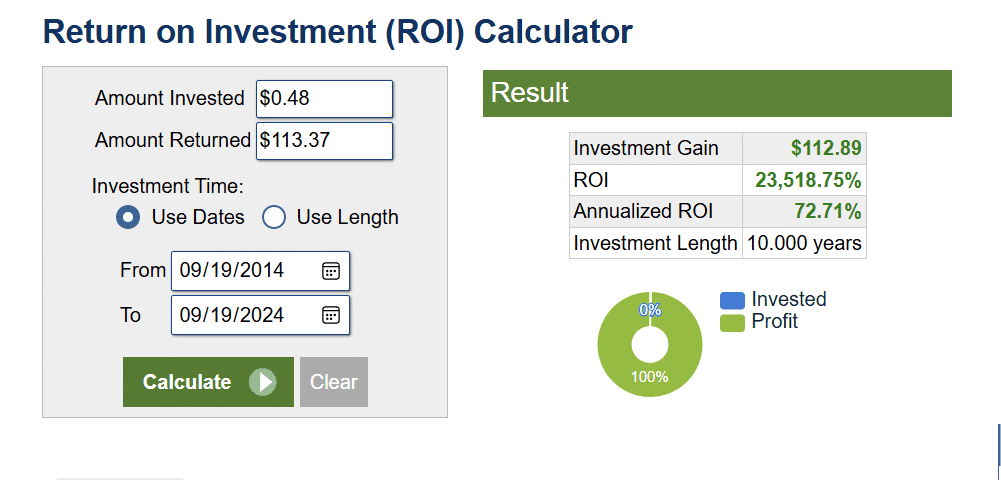 Записваме цената от преди 10 години в полето "Amount invested".