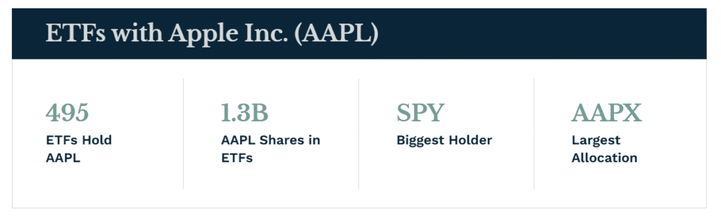 Според сайта ETF.com, към момента, 495 ETF-и включват 1.3 милиарда Apple акции.