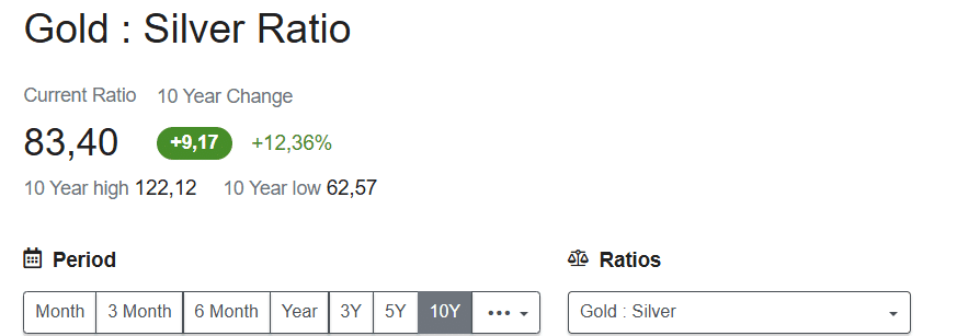 Имайки предвид производството, цената на златото би трябвало да бъде около осем пъти повече от тази на среброто.