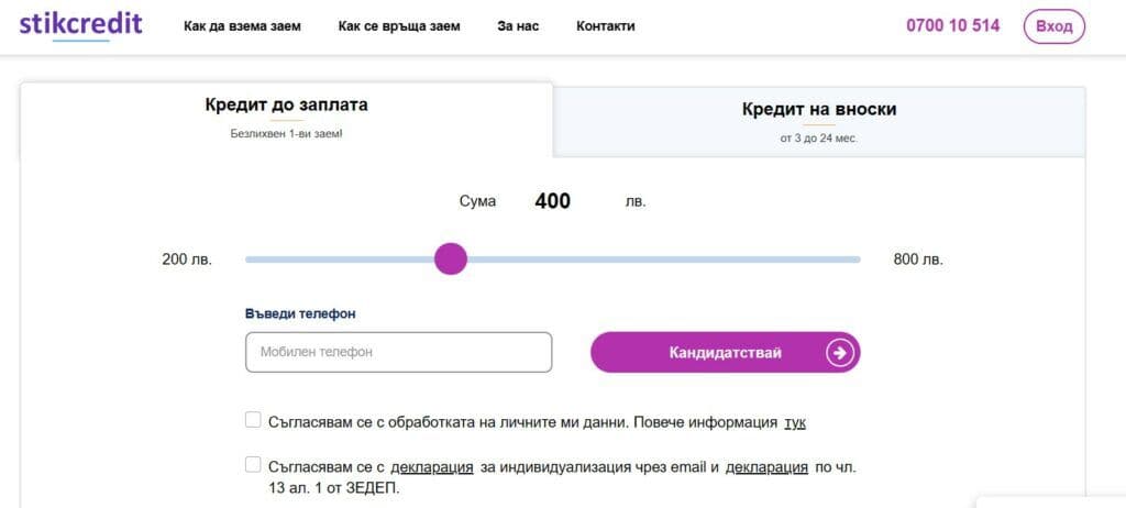 Стик Кредит предлага два вида заеми: до заплата и на вноски.