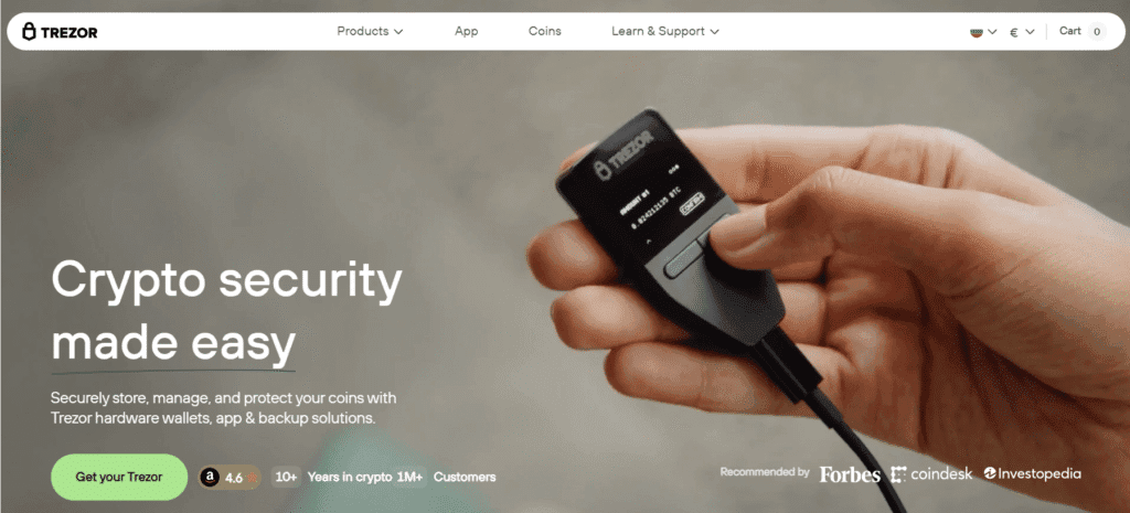 Trezor е една от най-сигурните опции за хардуерен крипто портфейл на пазара.