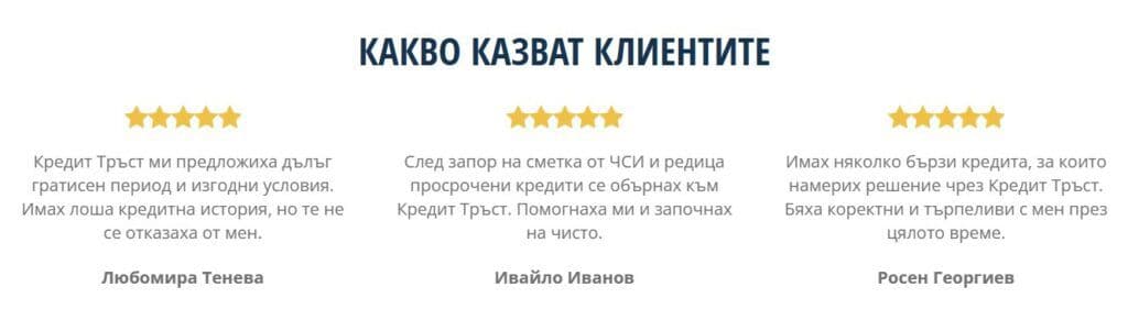 Вече сте клиент на компанията? Споделете своите впечатления и вижте Кредит Тръст мнения на други потребители.