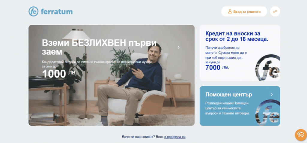 Новите клиенти, които не са използвали все още услугите на компанията, имат възможност да се възползват от Фератум безлихвен заем.