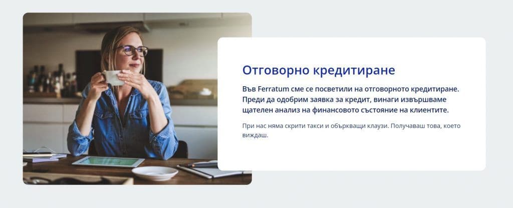 Фератум е първата в Европа (и България) небанкова финансова институция, специализирана в отпускането на бързи кредити изцяло онлайн.