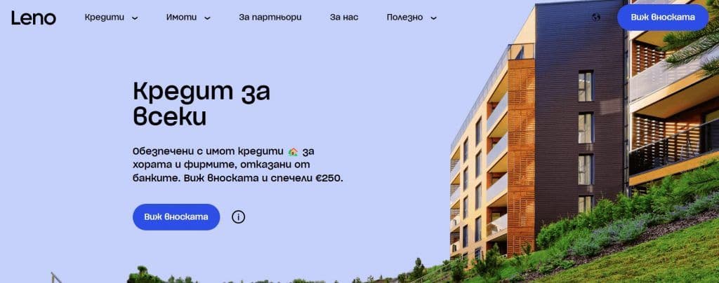 Лено предлага ипотечни кредити до 200,000 евро с моментално усвояване до 2,500 евро и гратисен период на главницата до 3 години на клиенти, на които банките отказват тази услуга.