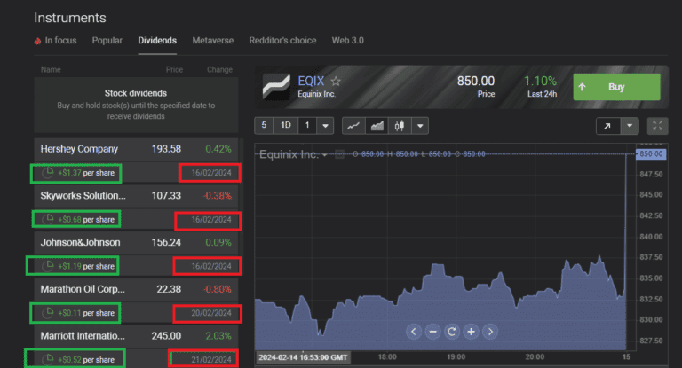 Ако искате да инвестирате в реални акции, които изплащат дивиденти. В Libertex има дивидентен календар, който е идеален за планиране на инвестиции в акции с дивиденти. (Повече за това по-надолу в прегледа).