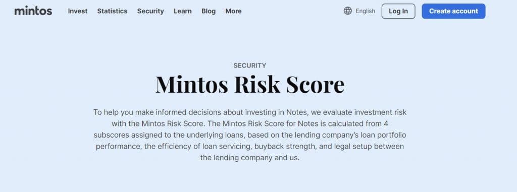 Този рейтинг е известен като Mintos Risk Score и наред с гаранцията за обратно изкупуване, формират едни от най-атрактивните характеристики на Mintos.