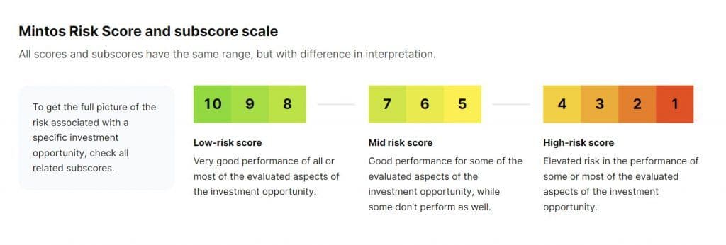 След своята щателна проверка, Минтос дава оценка по всеки един от тези критерии и изготвя крайна класификация на степента на инвестиционен риск с рейтинг от 10 до 1.