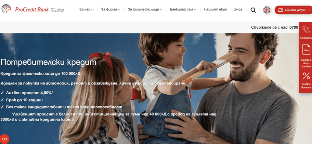 Сред най-популярните услуги за частни лица на ПроКредит Банк са кредитирането и срочните депозити.