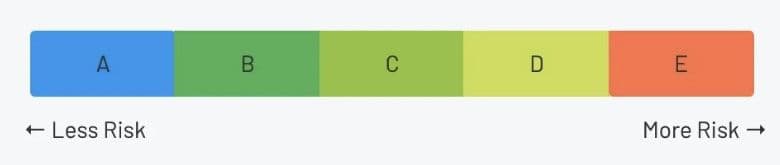 Платформата предлага точков рейтинг, вариращ от A до E, където A представлява най-минималният риск, а E най-високият.