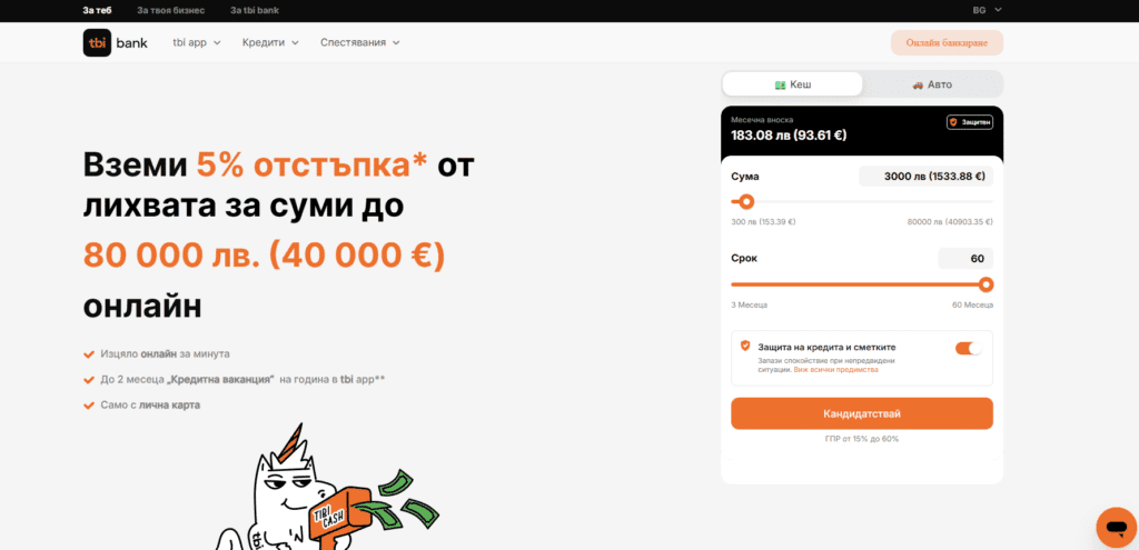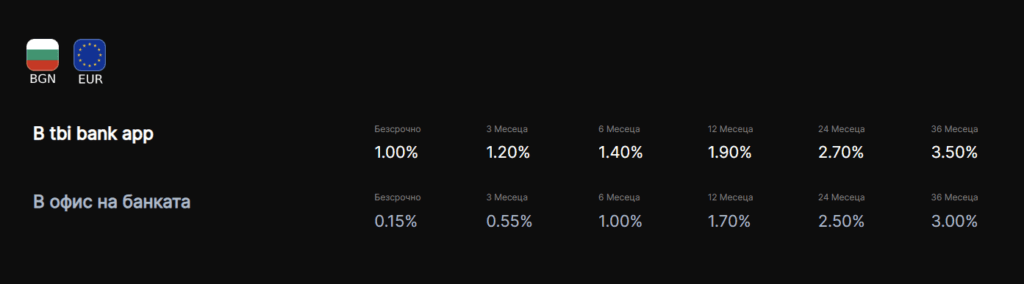 ТБИ Банк предлага конкурентни лихви по депозити (до 3,5%), но кредитните им продукти имат сравнително високи лихви спрямо пазара. Добър баланс представлява картата Neon с нулеви такси за обслужване.